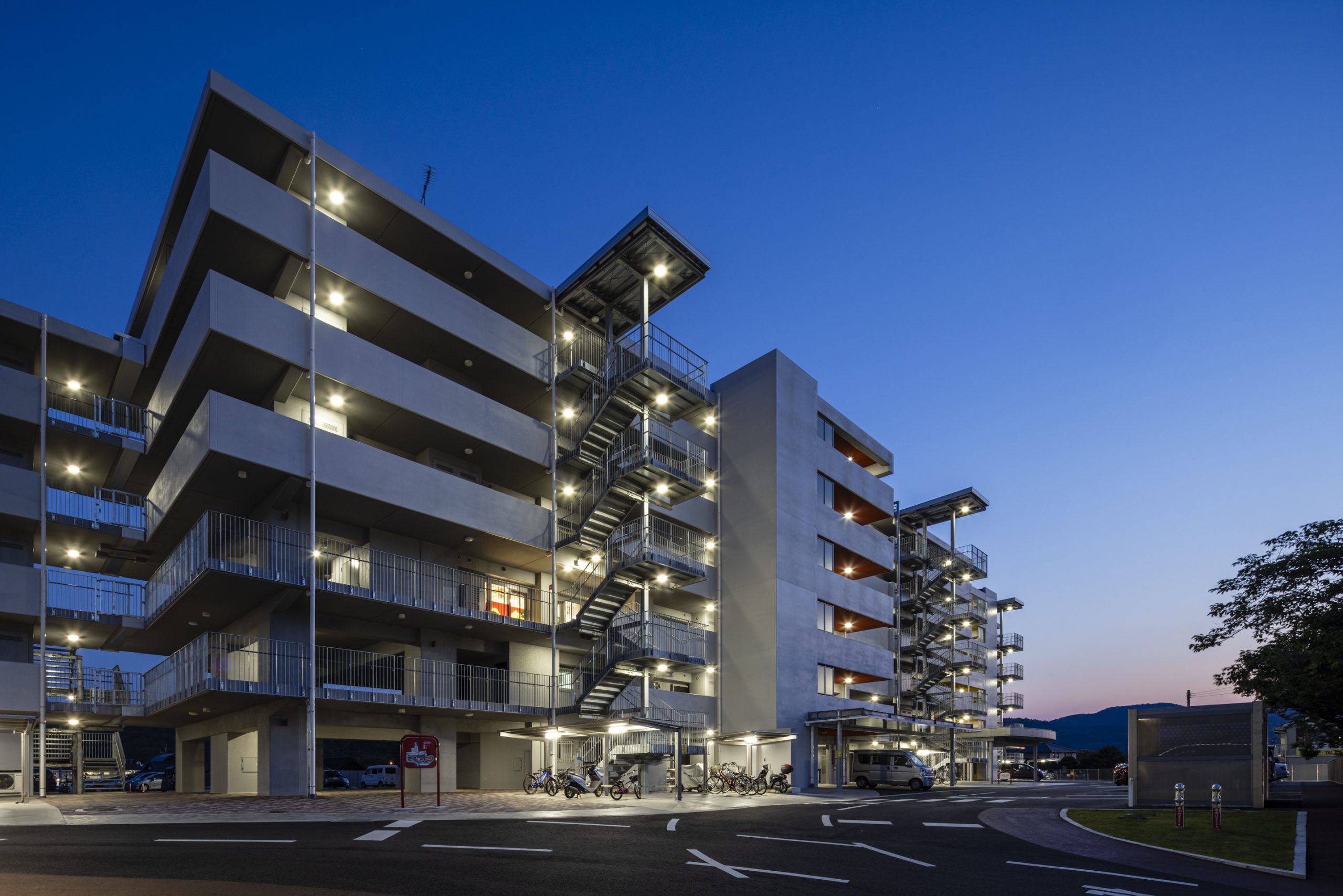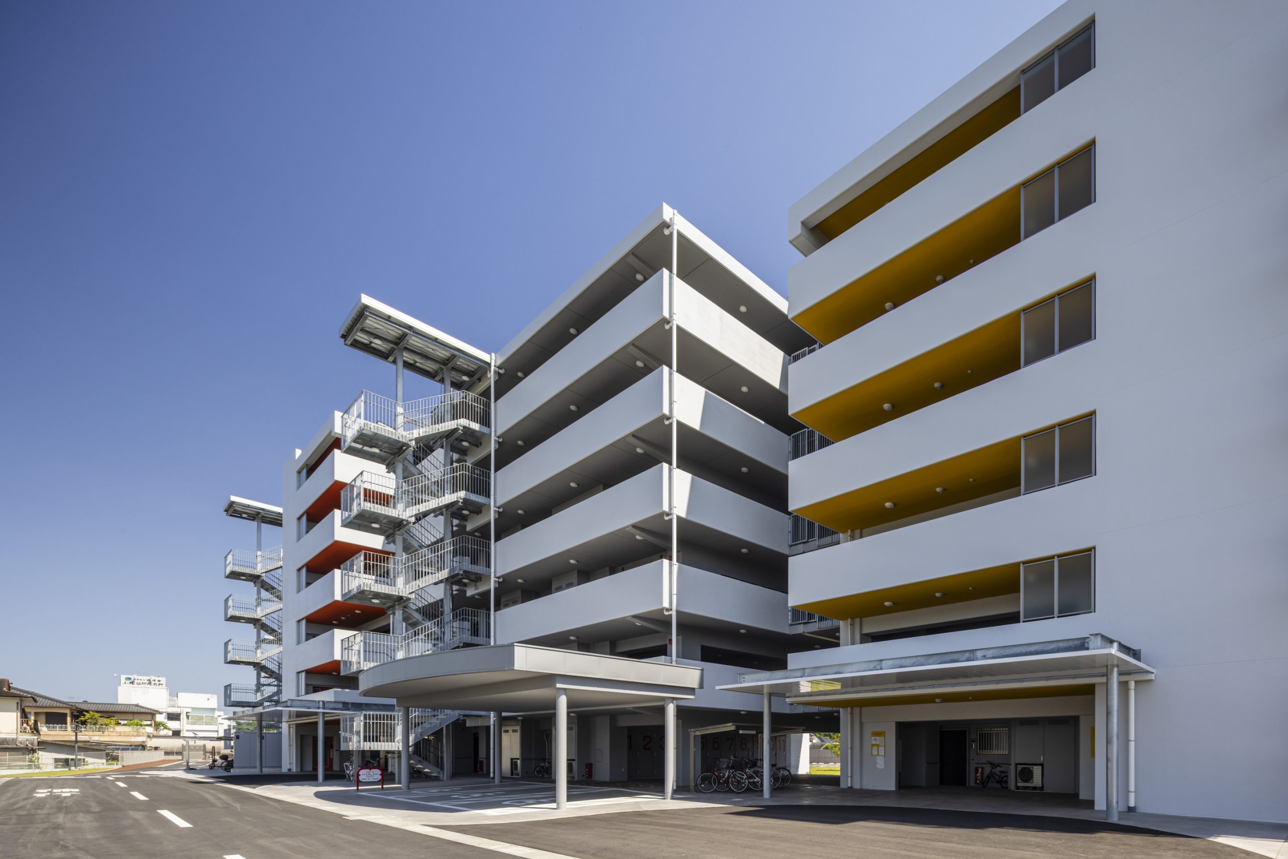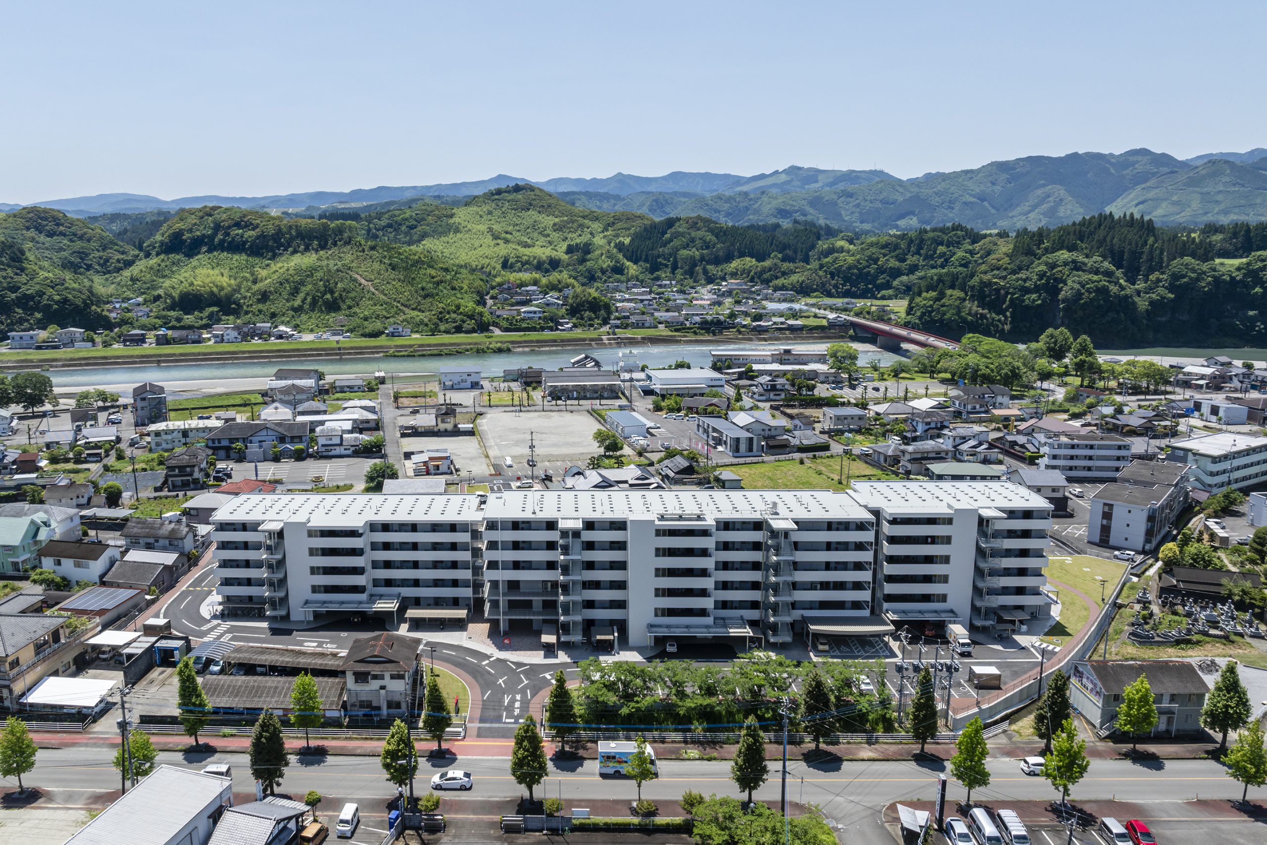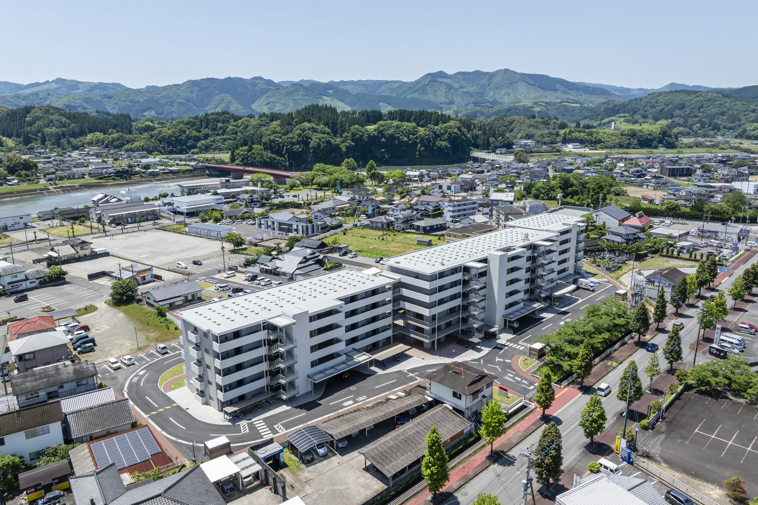 用途 災害公営住宅敷地面積 10,870.02㎡建築面積 2,197.37㎡延床面積 8,243.19㎡構造規模 鉄筋コンクリート造 6階建て工期 2022年10月~2023年12月所在地 熊本県人吉市