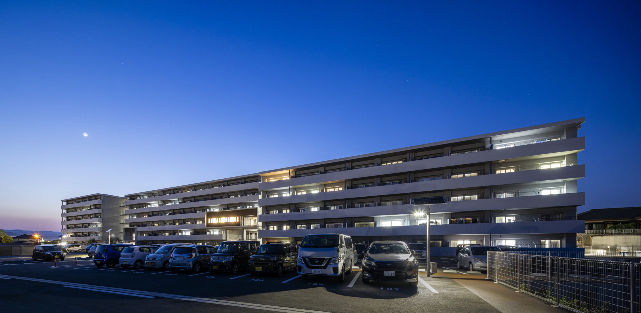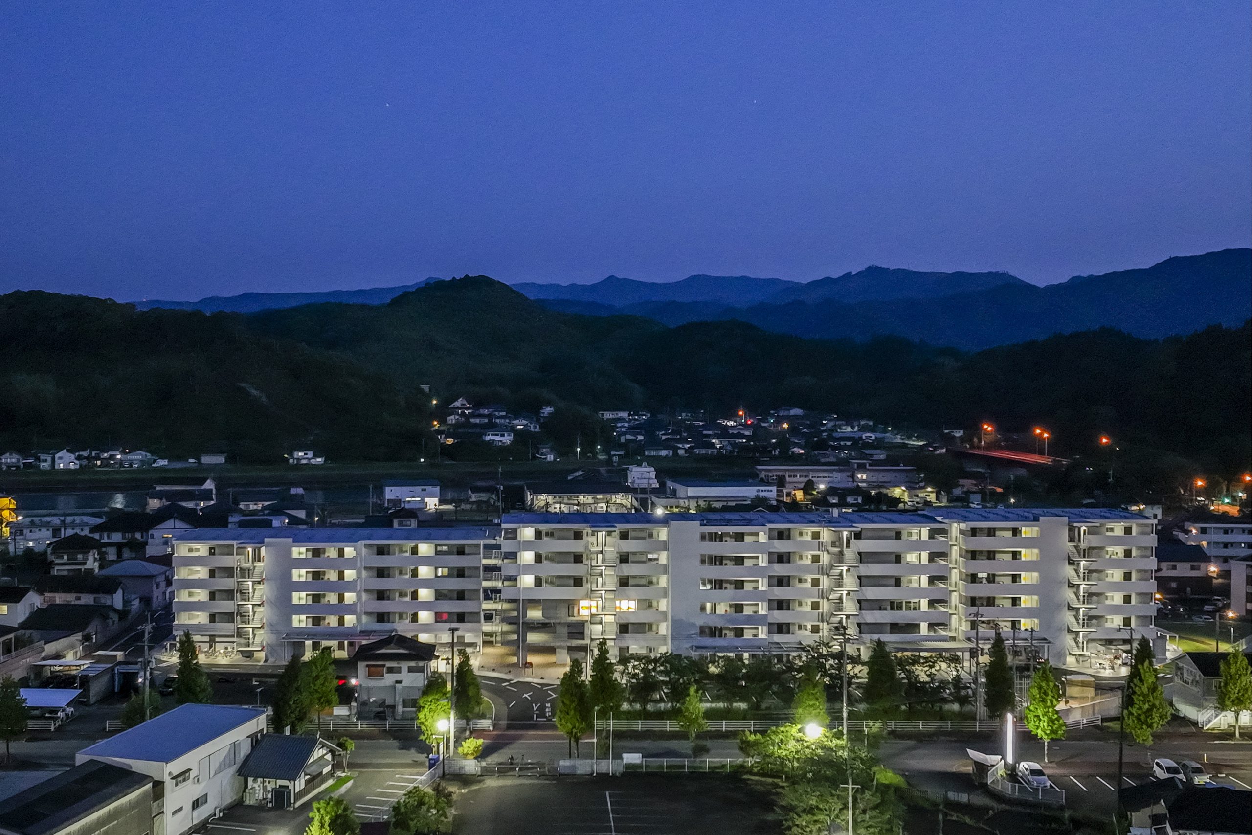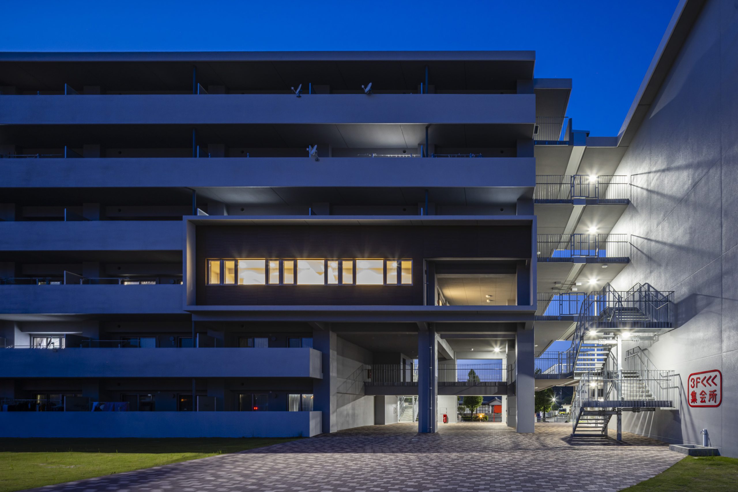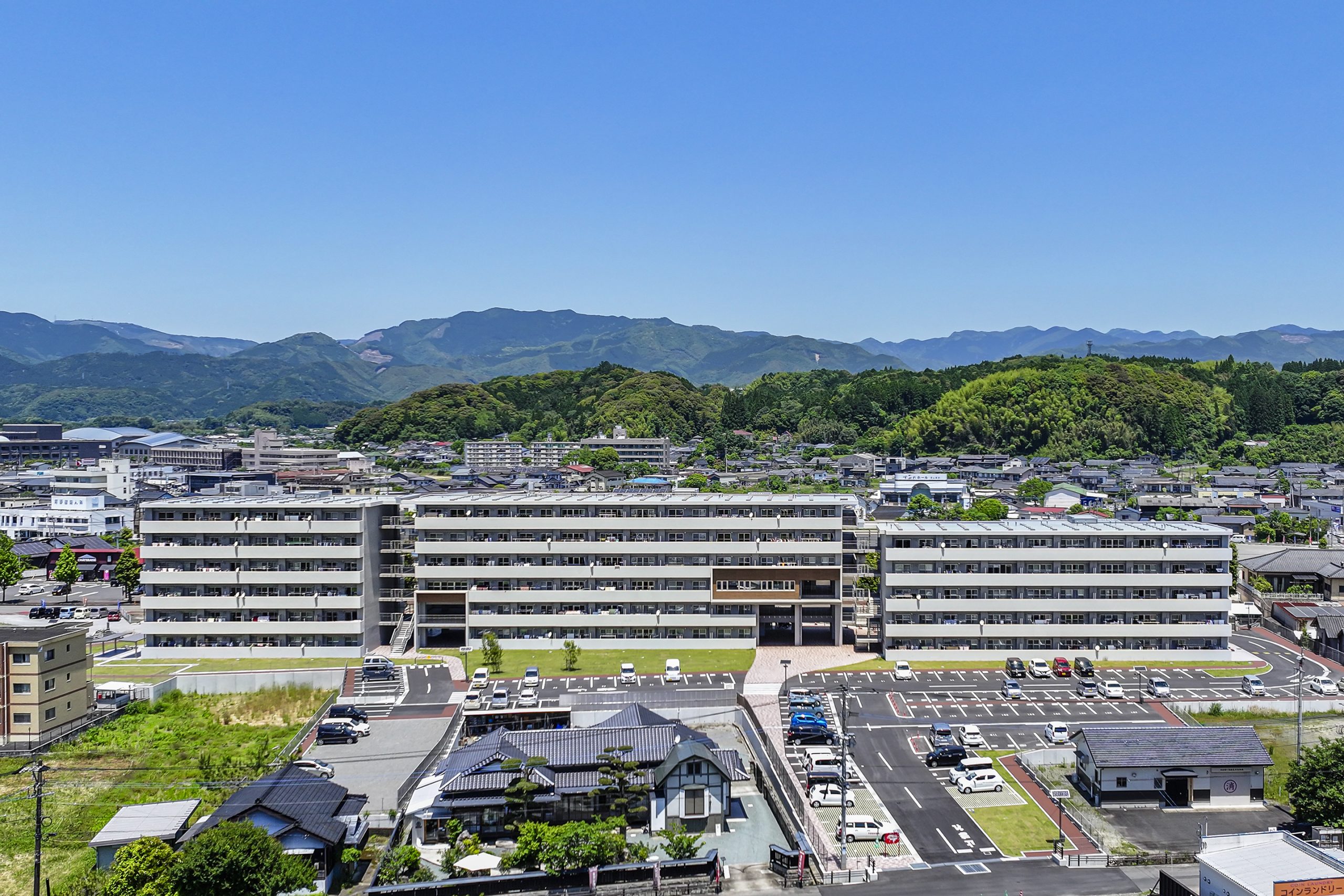 用途 災害公営住宅敷地面積 10,870.02㎡建築面積 2,197.37㎡延床面積 8,243.19㎡構造規模 鉄筋コンクリート造 6階建て工期 2022年10月~2023年12月所在地 熊本県人吉市